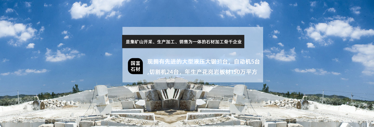 麻城市国富石材制品有限公司成立于2007年,厂区位于麻城市南湖办事处石材工业园。占地面积80亩,总投资4000万元。厂区地理环境优越,是集矿山开采、生产加工、销售为一体的石材加工骨干企业,现拥有先进的大型液压大锯31台,自动磨机5台,切割机24台,年生产花岗岩板材150万平方。主要生产和加工芝麻白系列产品,有外墙干挂石材、铺地石板、桥栏板、剁斧石、花锤石、台阶石、路沿石、光板、火烧板、荔枝面、盲道石、蘑菇面、机刨面等各种异形石材工艺品。